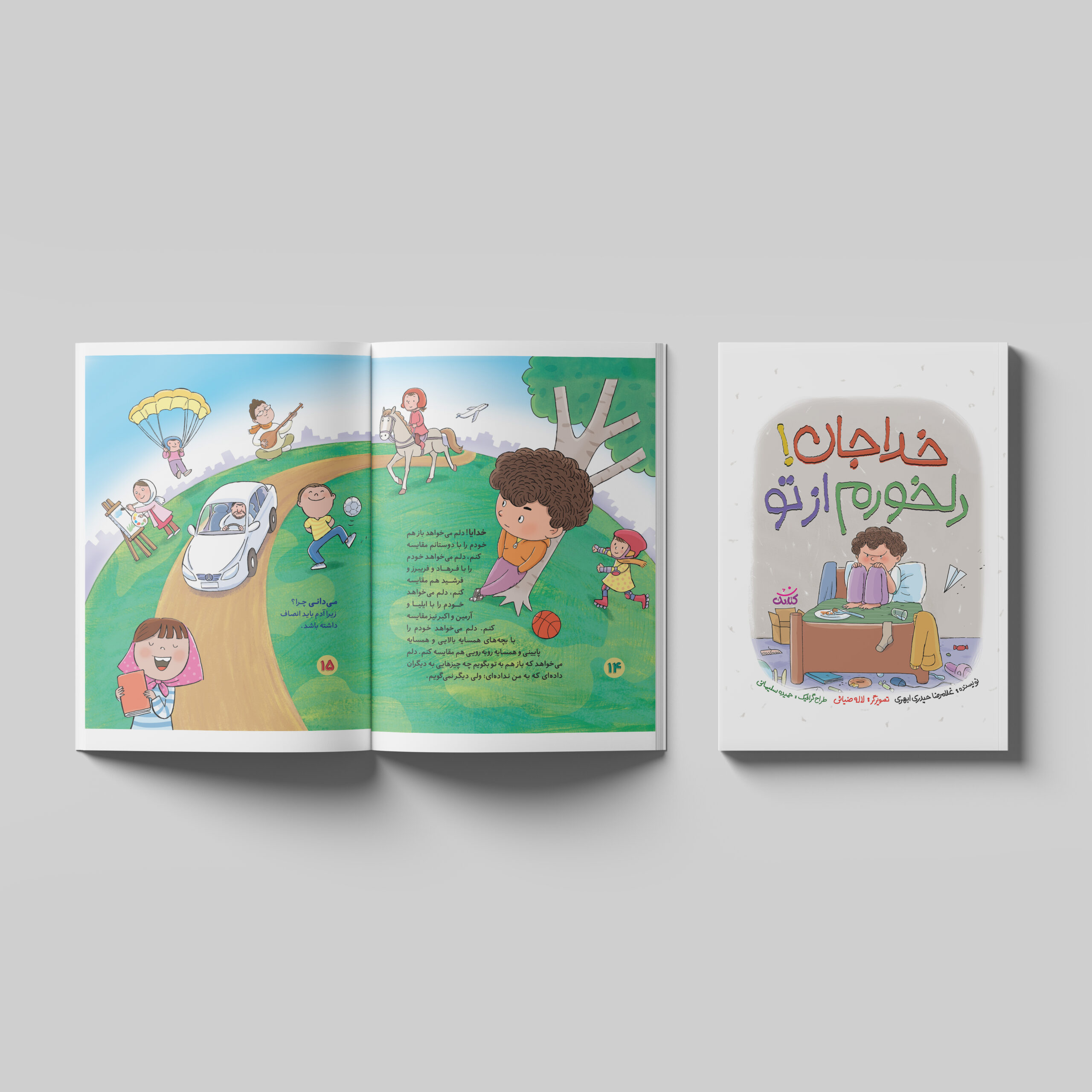 تو این کتاب، قصههایی هست دربارهٔ بچههایی که خودشون رو با بقیه مقایسه میکنن. مثلاً میگن چرا من اینو ندارم، چرا اون یکی اونو داره. اما یه چیز خیلی مهم تو این کتاب هست: بچهها با خدای خودشون حرف میزنن و کمکم میفهمن که چقدر نعمت دارن و دیگه خودشون رو با بقیه مقایسه نمیکنن.