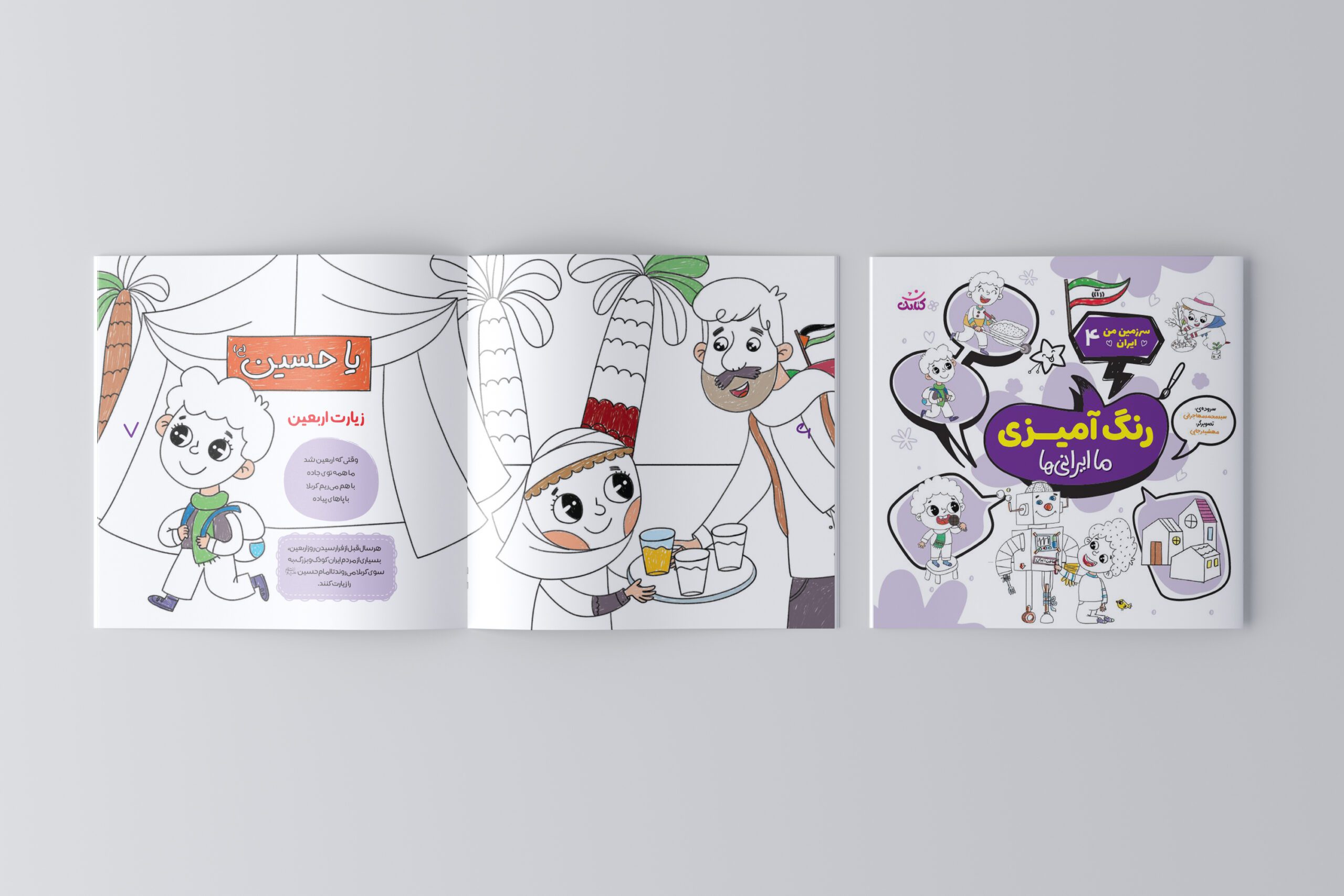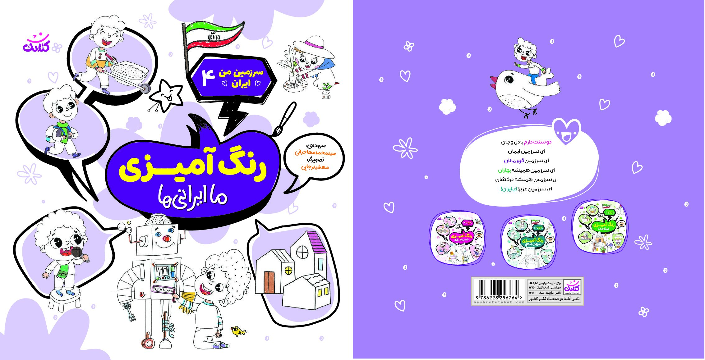 این کتاب جلد چهارم از مجموعه رنگ آمیزی سرزمین من ایران است که علاوه بر شعر و رنگ آمیزی و سرگرمی، کودکان را با ویژگی ها و رسوم ایران مانند: زیارت اربعین، عزاداری امام حسین (ع) و… آشنا میکند.