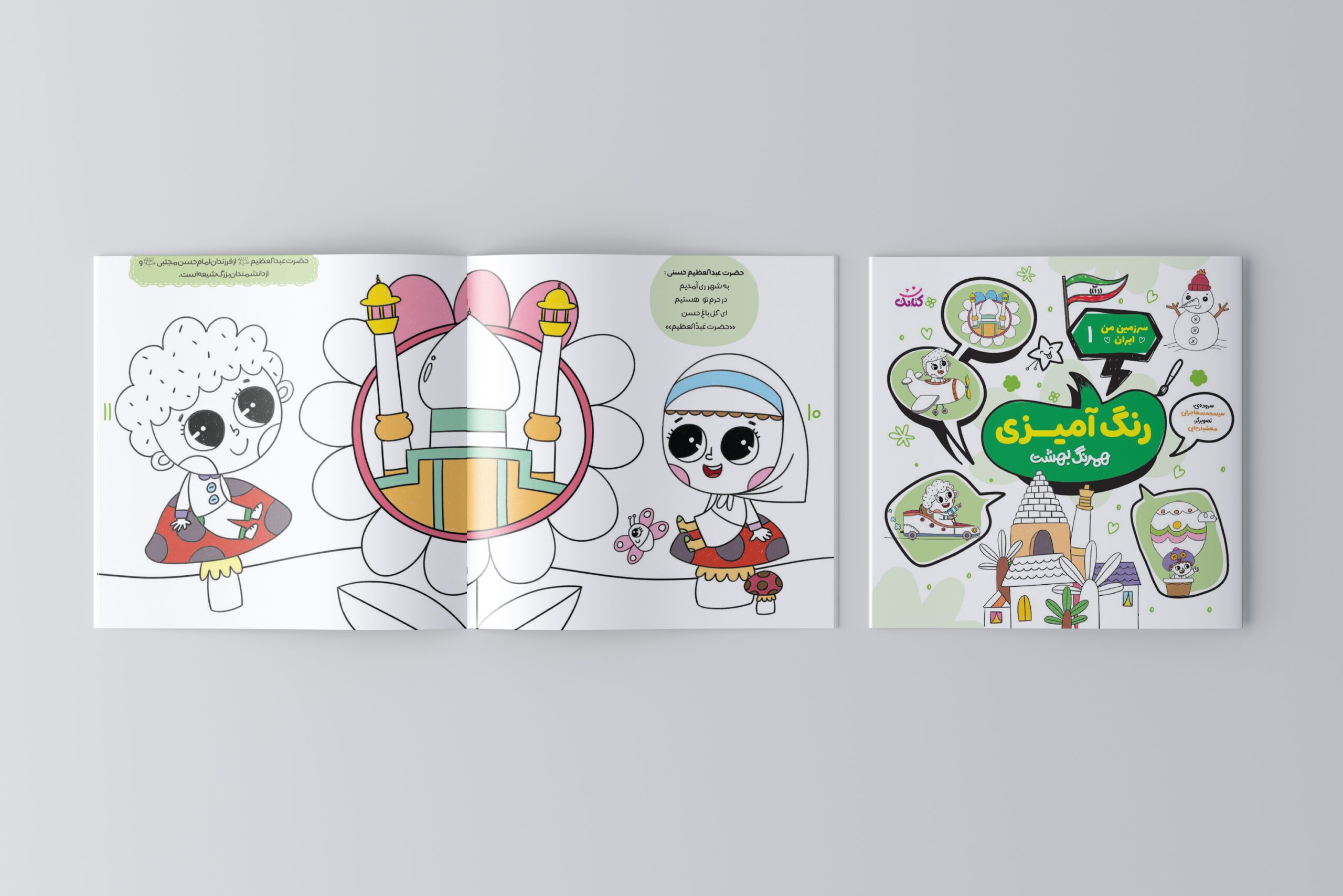 این کتاب جلد اول از مجموعه رنگ آمیزی سرزمین من ایران است که علاوه بر شعر و رنگ آمیزی و سرگرمی، کودکان را با مکان های مقدس ایران مانند: حرم امام رضا (ع)، جمکران، مشهد اردهال و… آشنا میکند.