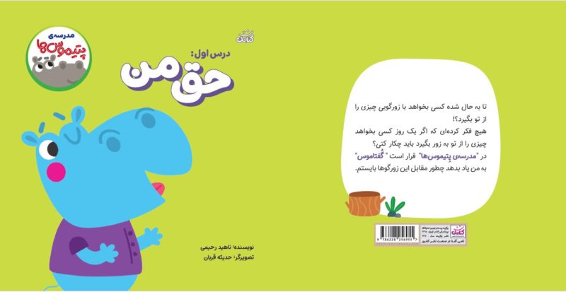 کتاب حق من از مجموعه ی پنج جلدی مدرسه ی پتیموس هاست که نویسنده در این مجموعه در قالب داستان دفاع از حق و ساکت نبودن در برابر زورگویی و خرابکاری را به بچه ها نشان می دهد.